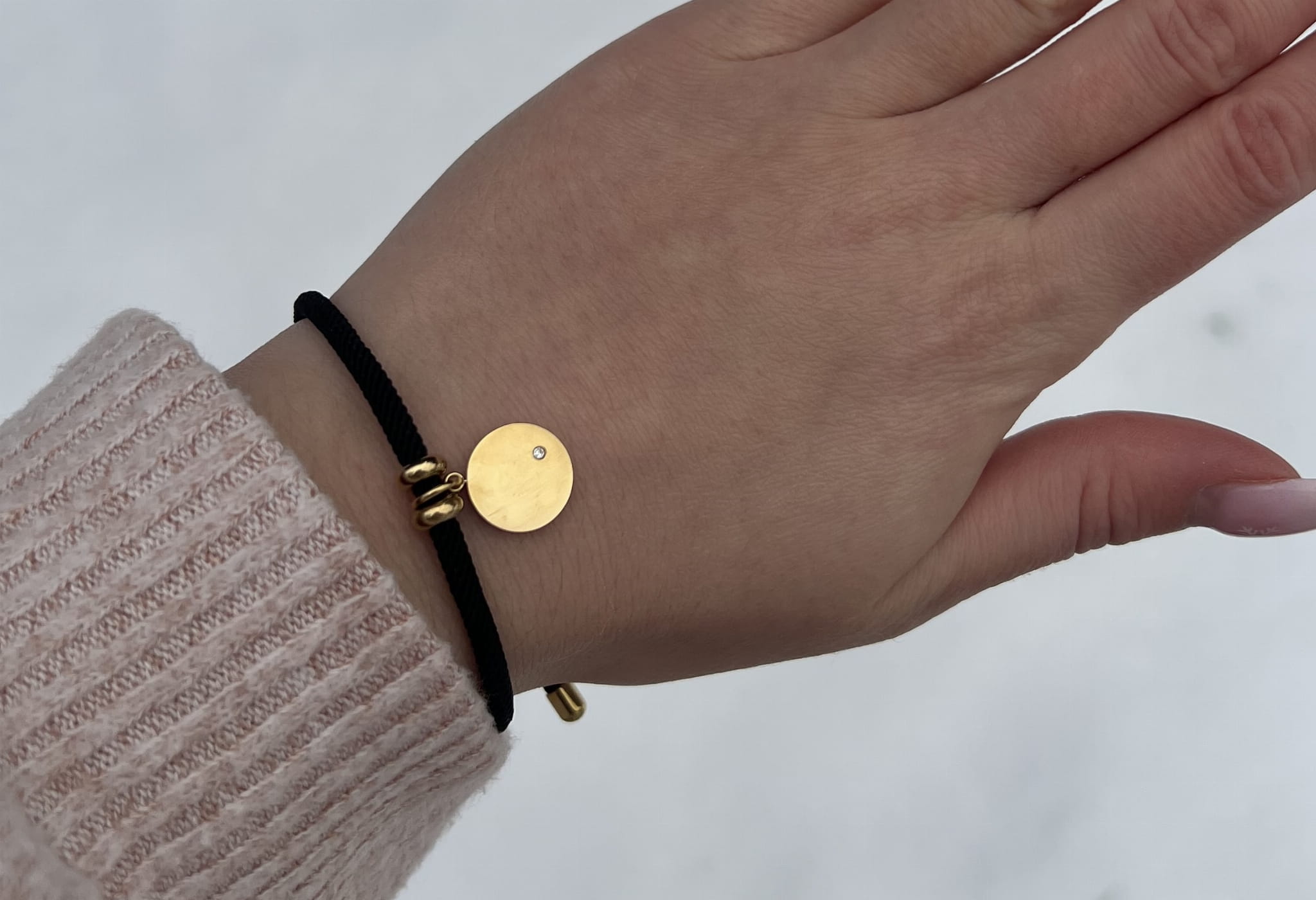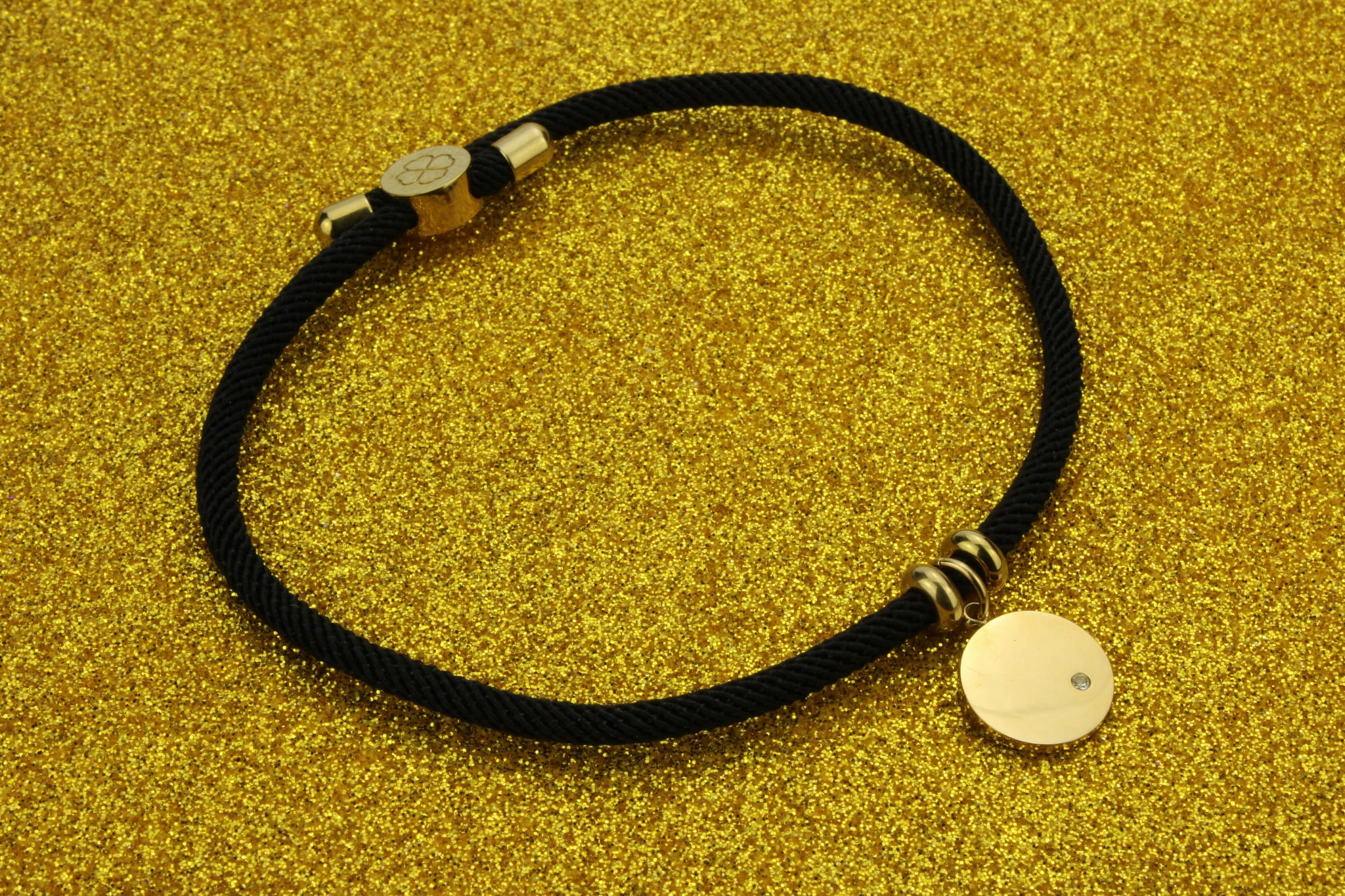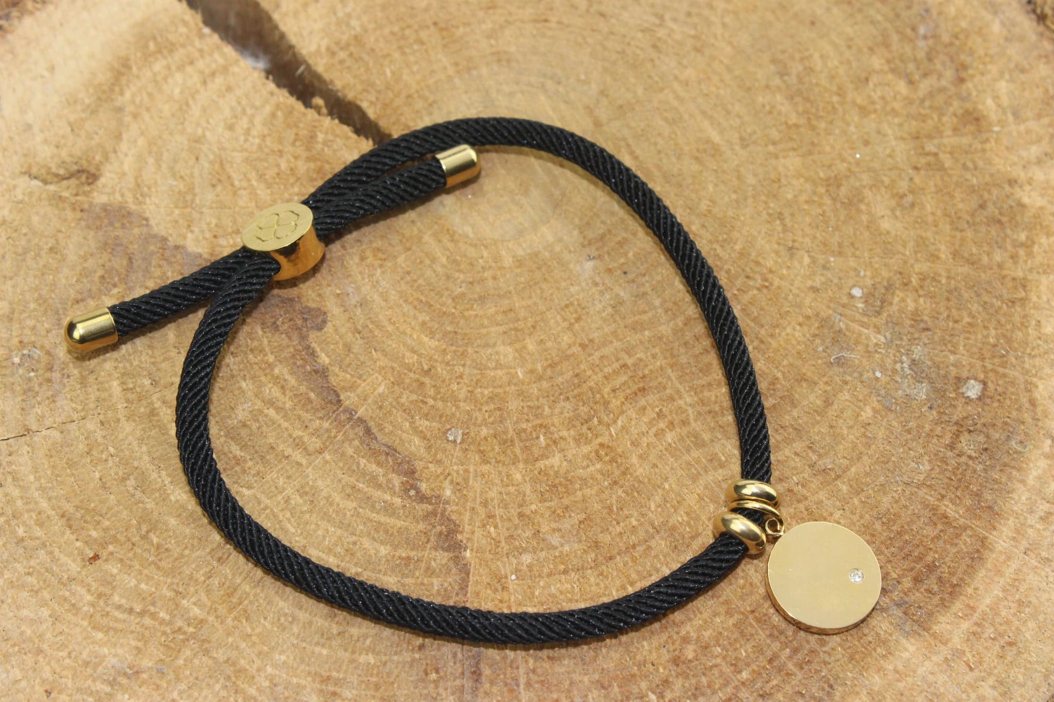 Bransoletka SZNUREK czarny KOŁO + grawer