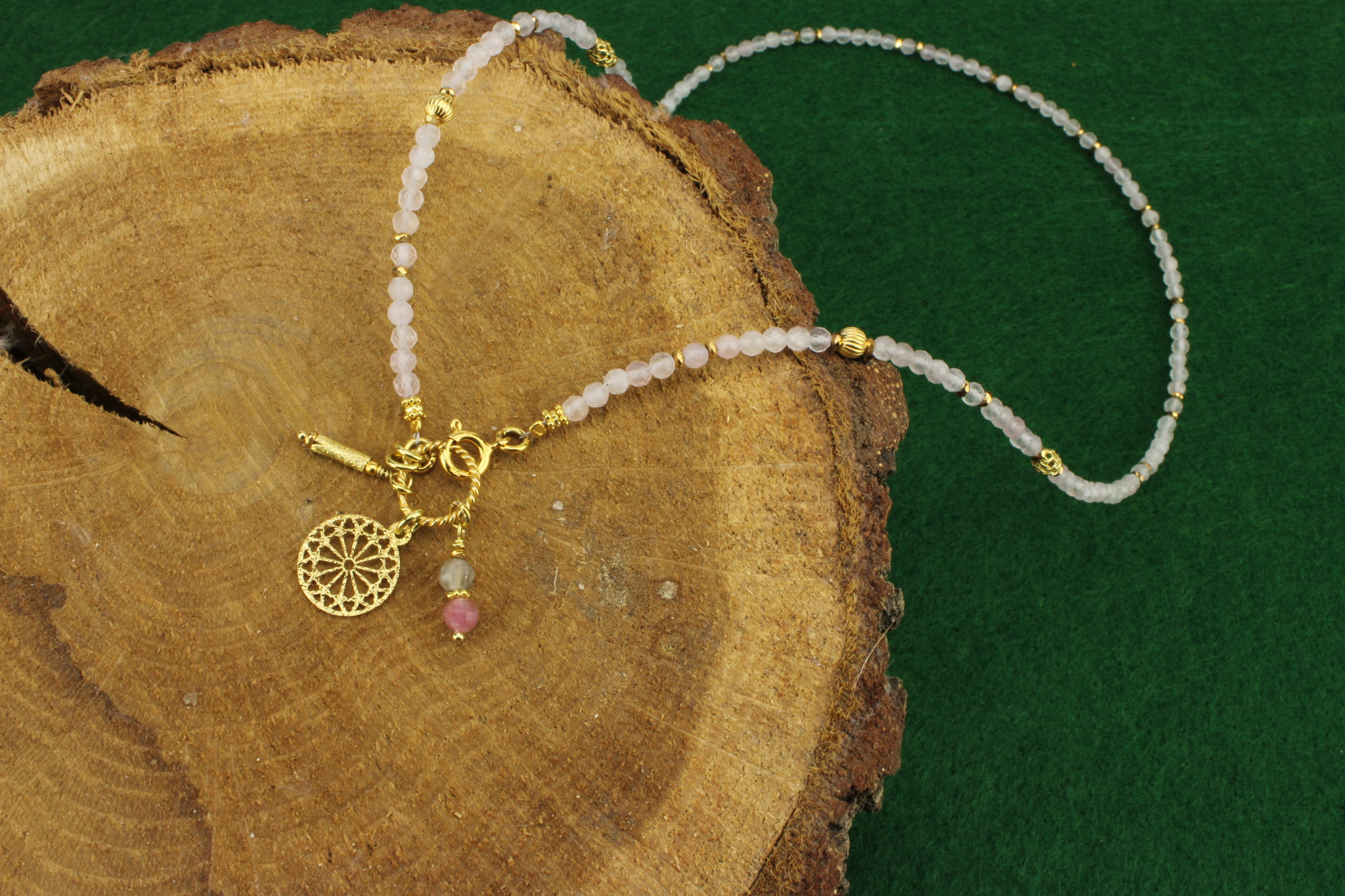 Naszyjnik ręcznie robiony -Kwarc Różowy