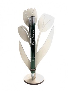Podstawka stojak ekspozytor na długopis + grawer TULIPAN kwiatek